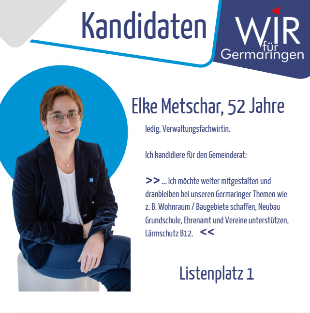 Unsere neue Wählergruppe ist mit engagierten Kandidaten als Wahlvorschlag Nr. 10 für den Gemeinderat zur Kommunalwahl am 15. März 2020 angetreten und steht mit ihrem Namen WIR für eine sach- und themenbezogene Kommunalpolitik direkt aus der Mitte unserer Bürgerinnen und Bürger.